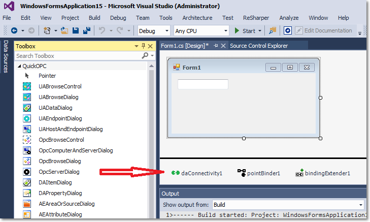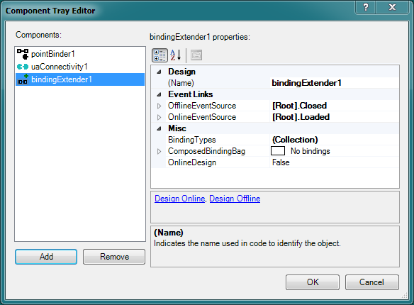 QuickOPC > Concepts > QuickOPC Development Models > Live Binding Model > Live Binding Model for OPC Data (Classic and UA) > Live Binding in the Designer > Component Tray