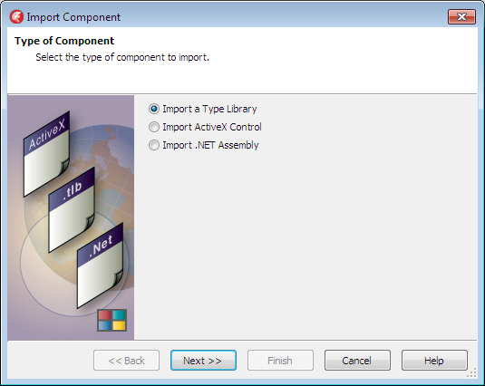In Delphi, select command . The first page of the “Import Component” wizard appears, titled “Type of Component”: