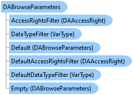 The most generic address space browsing method is BrowseNodes. It combines the functionality of BrowseBranches and BrowseLeaves, and it also allows the widest range of filtering options by passing in an argument of type DABrowseParameters, or individual arguments for data type filter and access rights filter.