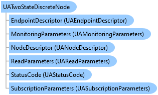 'Declaration<ComVisibleAttribute(False)> <UATypeDefinitionIdAttribute("nsu=http://opcfoundation.org/UA/;i=2373")> <UANamespaceAttribute("http://opcfoundation.org/UA/")> <UATypeAttribute()> <CLSCompliantAttribute(True)> <TypeConverterAttribute(System.ComponentModel.ExpandableObjectConverter)> Public Class UATwoStateDiscreteNode Inherits OpcLabs.EasyOpc.UA.DataAccess.UADiscreteItemNode(Of Boolean,Boolean) Implements LINQPad.ICustomMemberProvider, OpcLabs.BaseLib.ComTypes._Object2