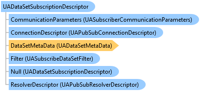 Inside the dataset subscription descriptor, you always need to specify the PubSub connection, using the ConnectionDescriptor Property. You will typically also need to fill in data in the Filter Property (see Message Filtering (OPC UA PubSub)), and sometimes provide the DataSetMetaData Property (see Dataset Metadata (OPC UA PubSub)). The CommunicationParameters Property is used to specify details about the communication, message receive timeout, and parameters specific to message or transport protocol mapping.