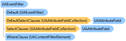 The UAEventFilter object (used for specifying the event filters) is probably the most complicated part of the OPC UA Alarms & Condition features. It has two main parts: Select clauses (contained in the SelectClauses property, of UAAttributeFieldCollection type), and a Where clause (contained in the WhereClause property, of UAContentFilterElement type). The Select clauses contain a collection of the attribute fields to return with each event in a notification. The Where clause contains the criteria limiting the notifications.
