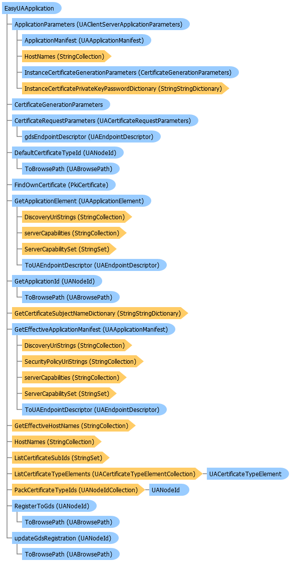 For more information, see EasyUAApplication and OpcLabs.EasyOpc.UA.Application.ComTypes._EasyUAApplication in .NET Reference.