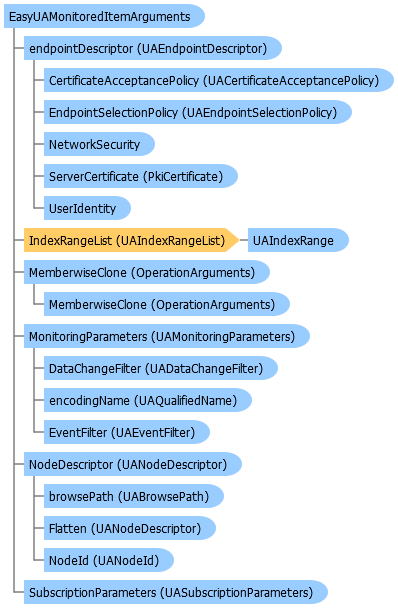 For more information, see EasyUAMonitoredItemArguments and OpcLabs.EasyOpc.UA.OperationModel.ComTypes._EasyUAMonitoredItemArguments in .NET Reference.