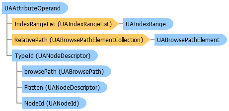 For more information, see UAAttributeOperand and OpcLabs.EasyOpc.UA.Filtering.ComTypes._UAAttributeOperand in .NET Reference.