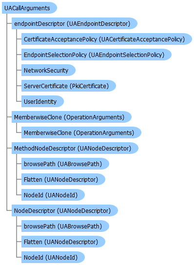For more information, see UACallArguments and OpcLabs.EasyOpc.UA.OperationModel.ComTypes._UACallArguments in .NET Reference.
