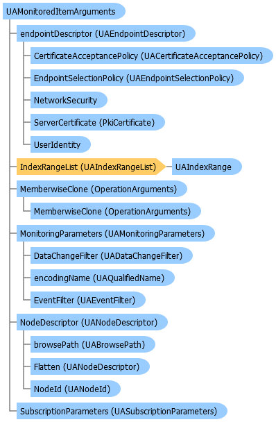 For more information, see UAMonitoredItemArguments and OpcLabs.EasyOpc.UA.OperationModel.ComTypes._UAMonitoredItemArguments in .NET Reference.