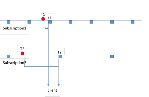 Let’s have a look at following situation where we have two subscription, using different notification rates: